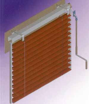 צלון ונציאני עץ מספק אפקט של תריס עם אלמנט עיצובי מחומרים